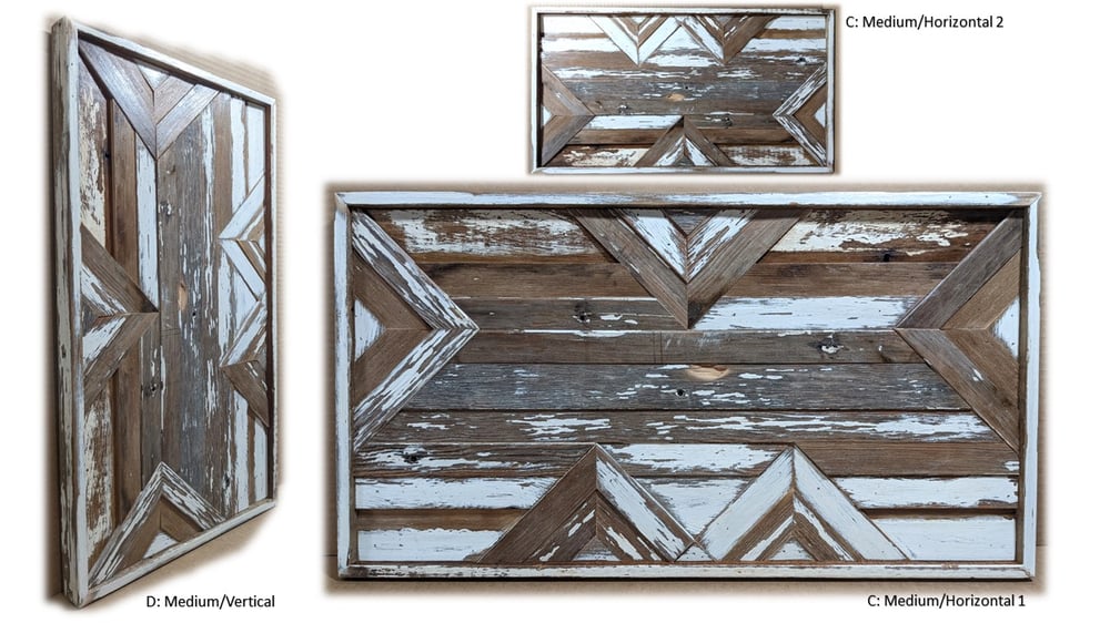 NOTE: Our Reclaimed Wood Artwork is One-of-a-Kind. While each piece will be carefully handmade using the same varieties of reclaimed woods… finished in the same or similar stain and paint colors and techniques...it is virtually impossible to replicate two different pieces of this artwork to look exactly alike.