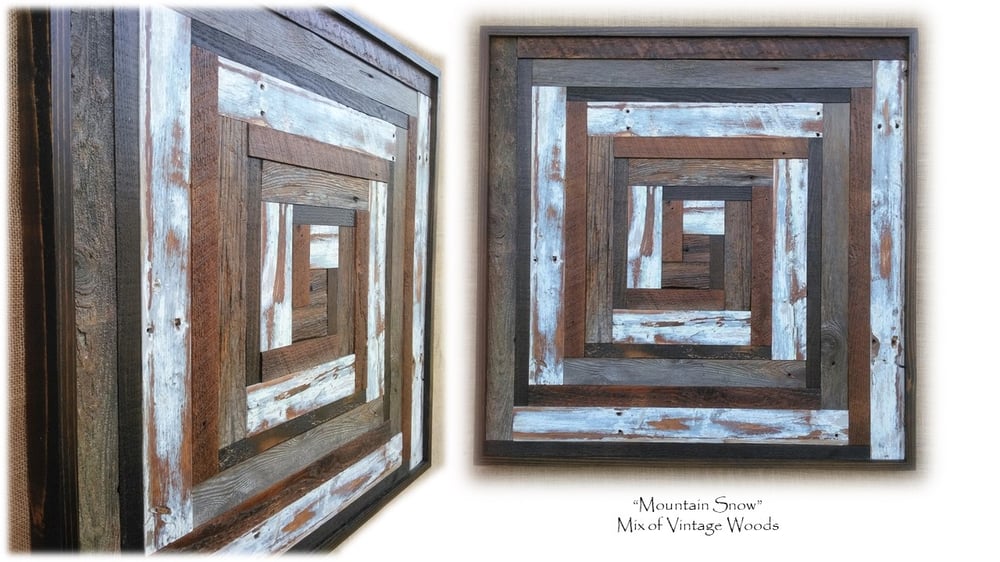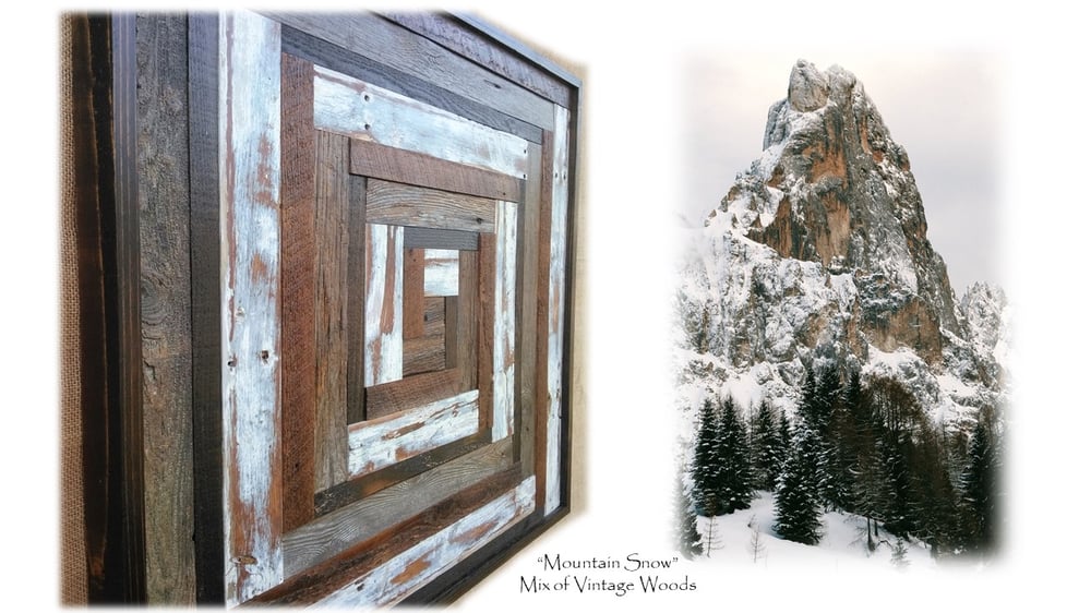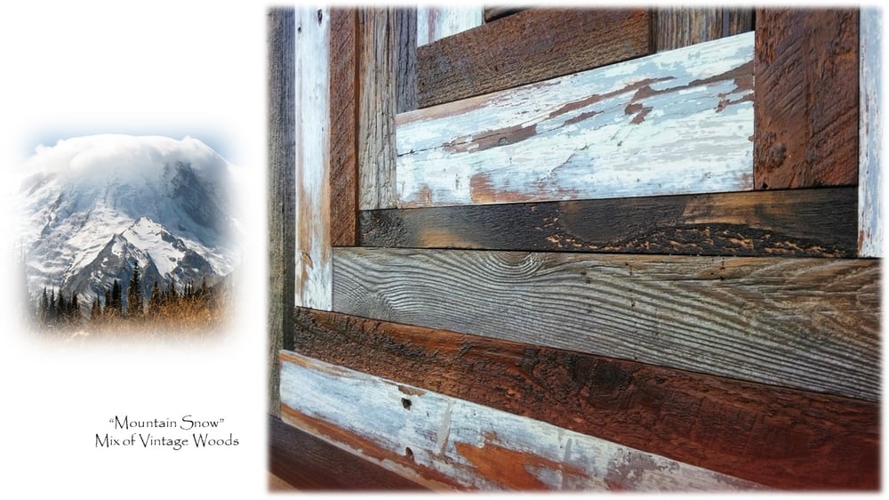 Artwork Reclaimed Vintage Wood "Mountain Snow"